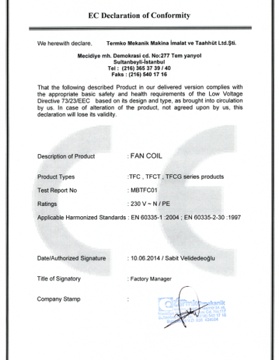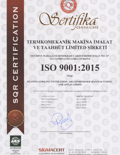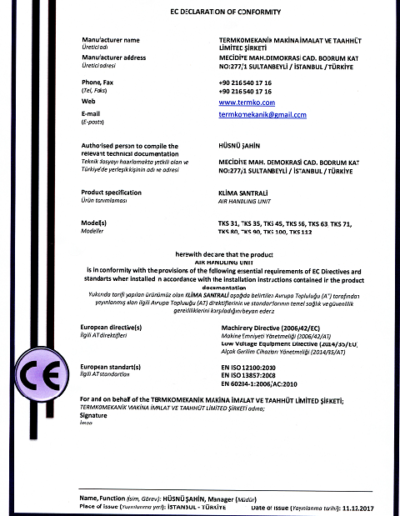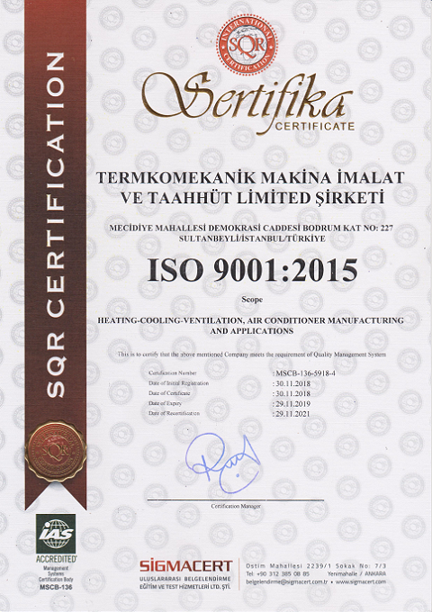 Tescilli markamız TERMKO ile “mühendislik, proje taahhüt ve imalat konularında ISITMA – SOĞUTMA – HAVALANDIRMA sektöründe başarı ile hizmetlerini sürdüren Termko; aynı titizlik, aynı kalite anlayışı ve sürekli gelişimle sektördeki faaliyetlerine devam etmektedir.